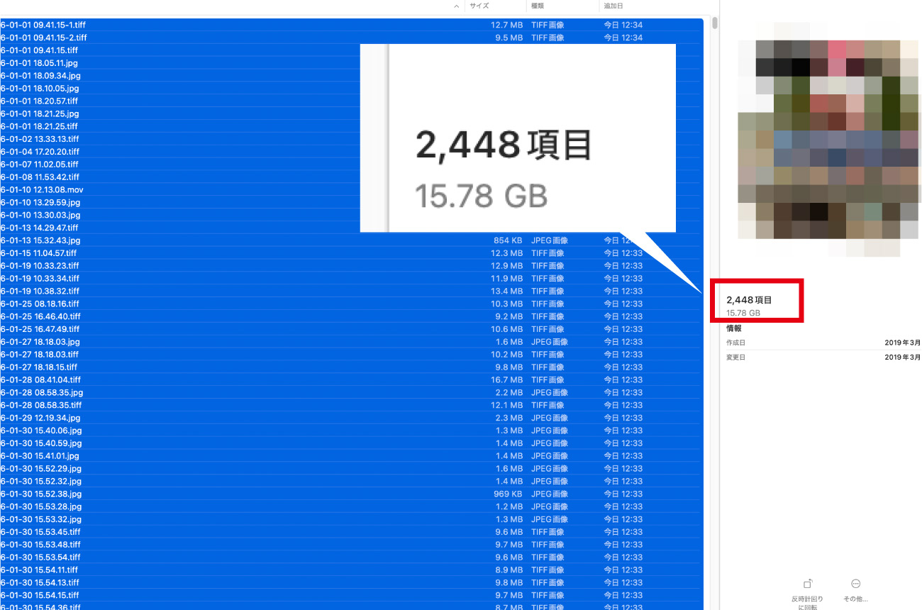 そしてFinderでファイルの数を数える2つ目の方法は、プレビュー表示から確認する方法。