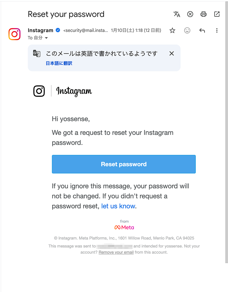 Instagramの「パスワードリセット」メール出回る ユーザー情報が大量流出か リンクのクリックは禁物
