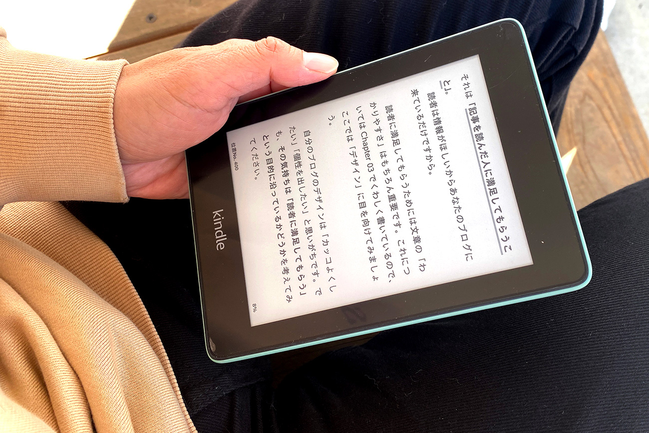Kindle端末の1個目のメリットは、本物の印刷に見えることです。
