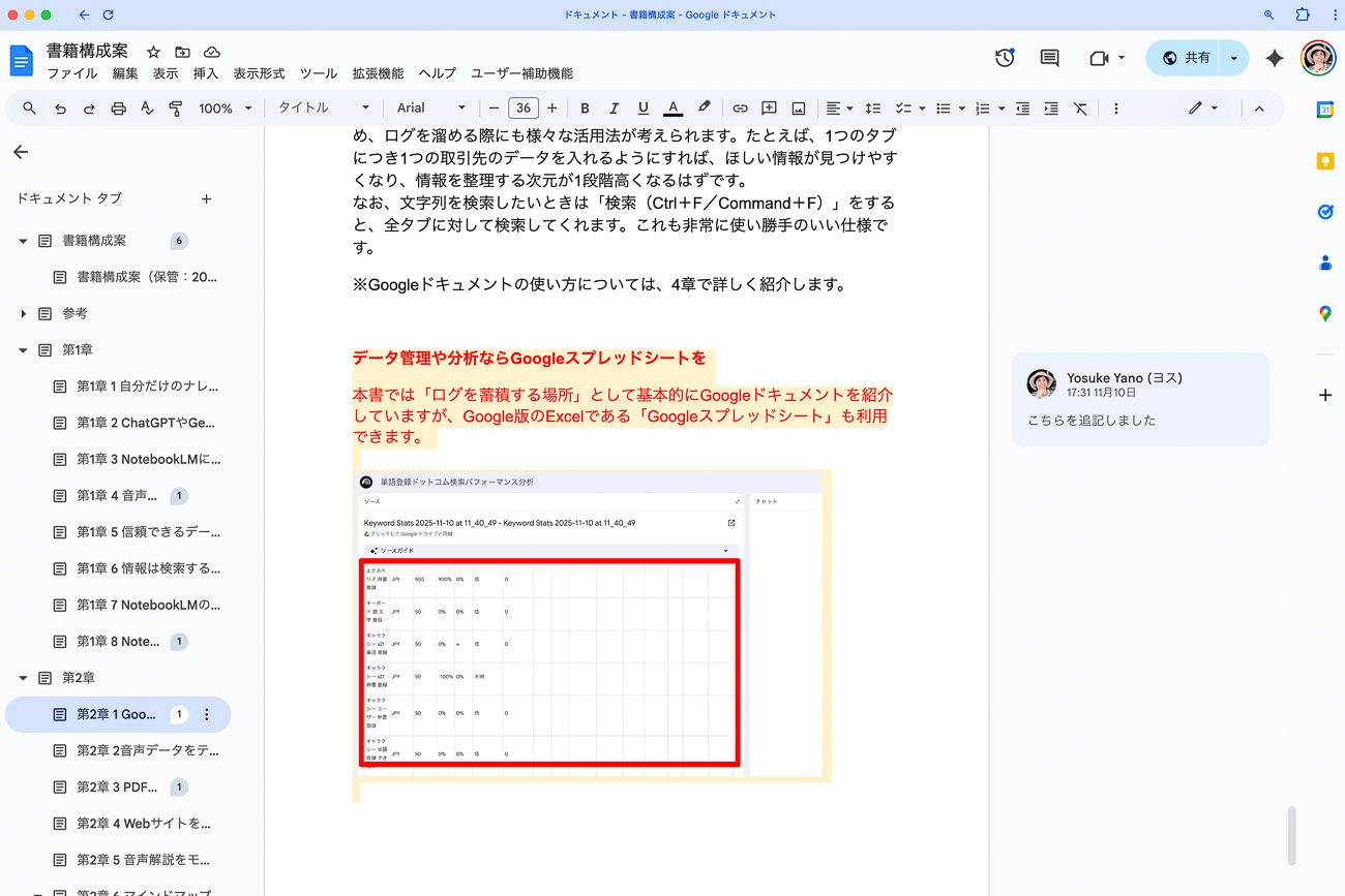 なお、執筆に使ったツールは本書でも紹介しているGoogleドキュメント。